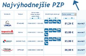 Kliknite na ONLINE.POISTENIE.sk a vyplňte niekoľko základných údajov o vašom aute a o Vás. Zobrazí sa vám cenová ponuka na poistenie PZP vo všetkých slovenských poisťovniach, takže si ľahko môžete zvoliť pre Vás tú najvýhodnejšiu cenu PZP. Ak sa vám ponuka bude pozdávať, môžete pokračovať v uzatváraní poistenia doplnením ďalších údajov, ktoré sú potrebné doplniť do poistnej zmluvy. Celý proces ukončíte zvolením platobnej metódy, pričom máte na výber tieto :